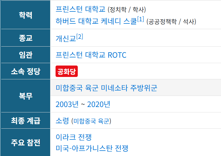 40대의 젊은 나이에 도널드 트럼프 행정부의 미국 국방장관으로 지명되었다.